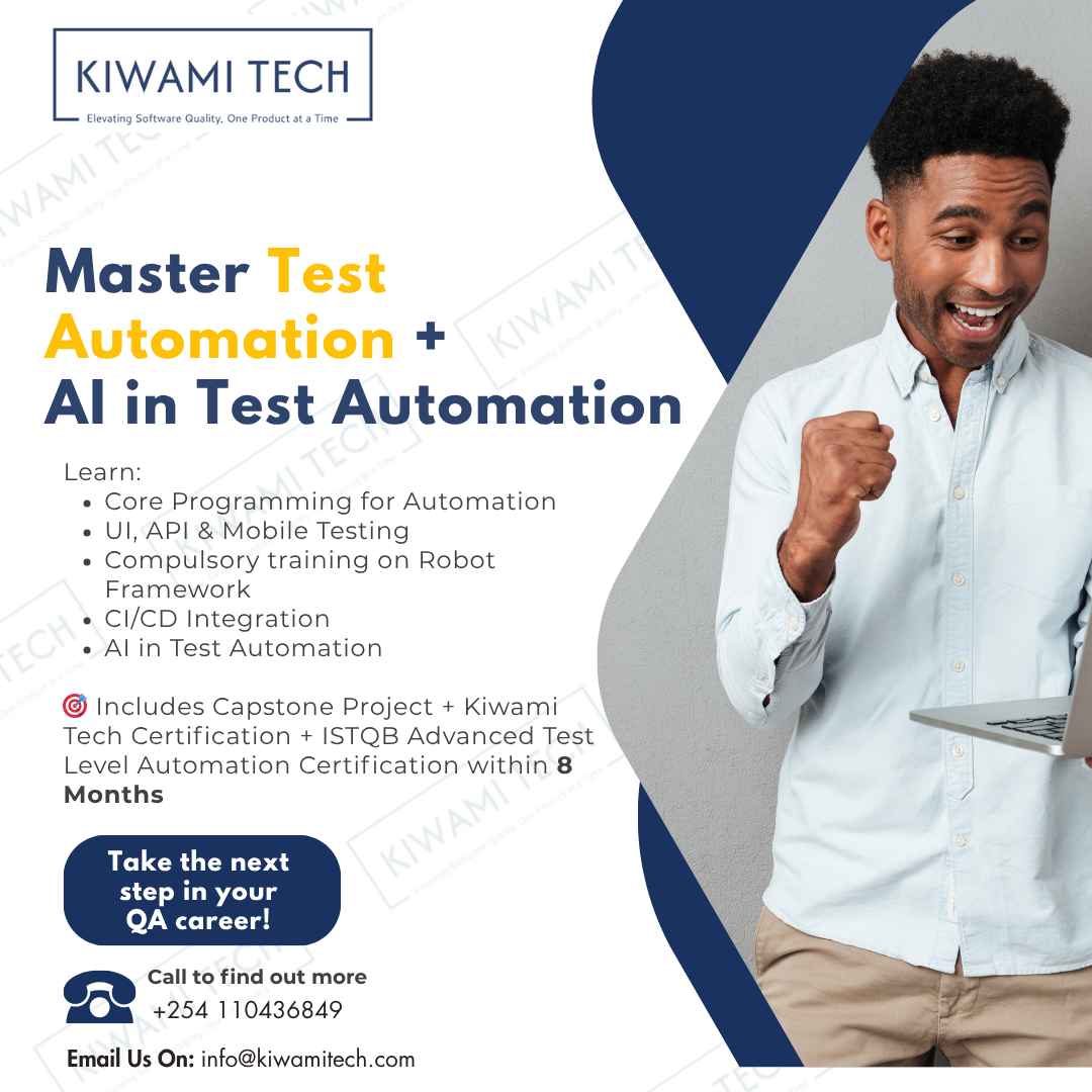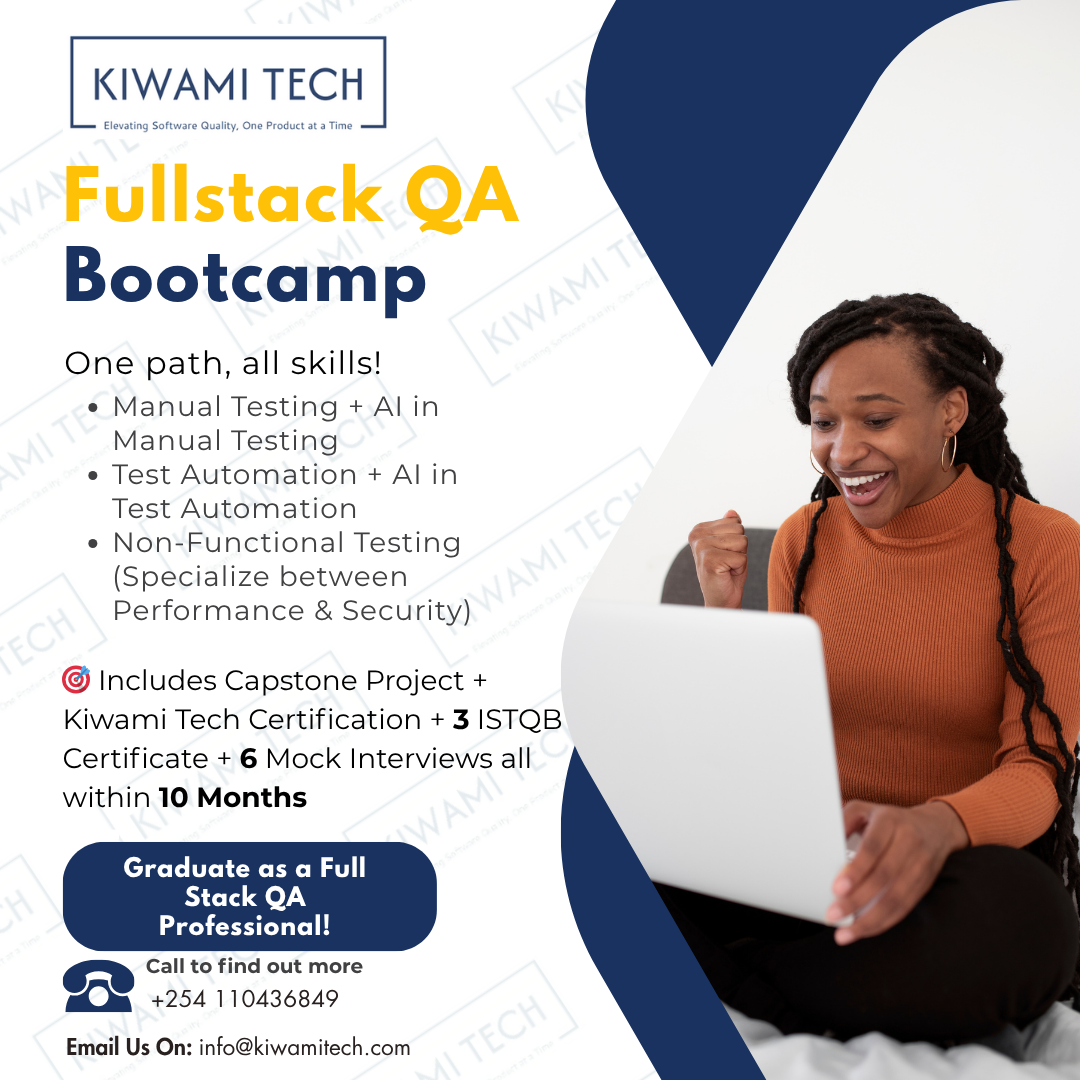 The bootcamp emphasizes hands-on projects, continuous feedback, and real-world simulations to ensure practical readiness. Graduates receive Kiwami Tech Certificates of Excellence for FullStack QA . Participants are also given ISTQB Foundation Certificate Voucher and 2 Advanced certification exams and technical practical interviews, demonstrating industry-level competence in fullstack QA.